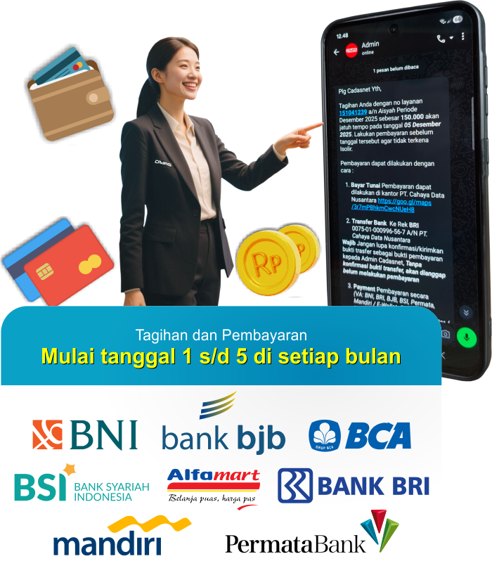 Mulai dari informasi, pendaftaran berlangganan, cek status, penanganan terhadap gangguan serta monitoring team kami selalu siap 24 jam untuk membantu kebutuhan anda